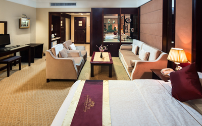 ●免费宽带上网接口 ●国际国内长途直拨 ●冲茶及咖啡餐具 ●迷你酒吧 ●电热水壶/冷水壶 ●国际国内数字电视 ●语音留言信箱 ●行政办公桌 ●电冰箱,保险柜 ●棋牌 ●豪华大床